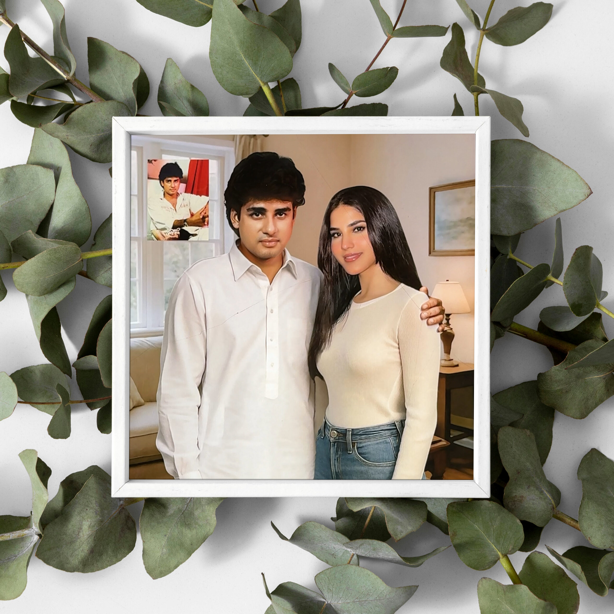 We’ve crafted a custom portrait of Aveera Singh Masson with her father by beautifully combining his photograph with one of her latest pictures. This special artwork captures their timeless connection in a single, meaningful frame.