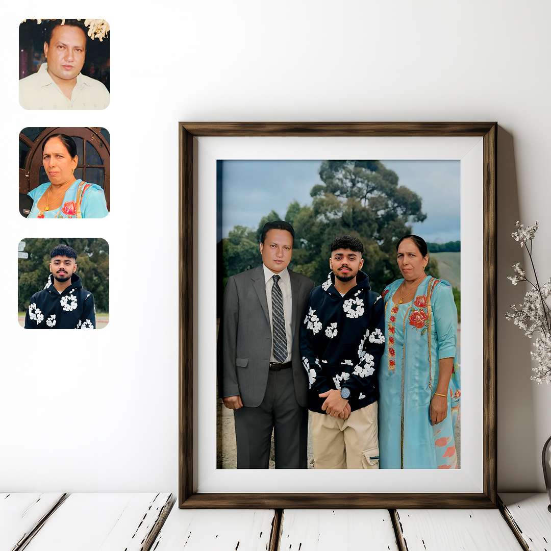 We help you surprise your loved ones by adding late parents, grandparents, or missing family members into one beautiful frame. Our goal is to turn your memories into meaningful gifts that last forever.